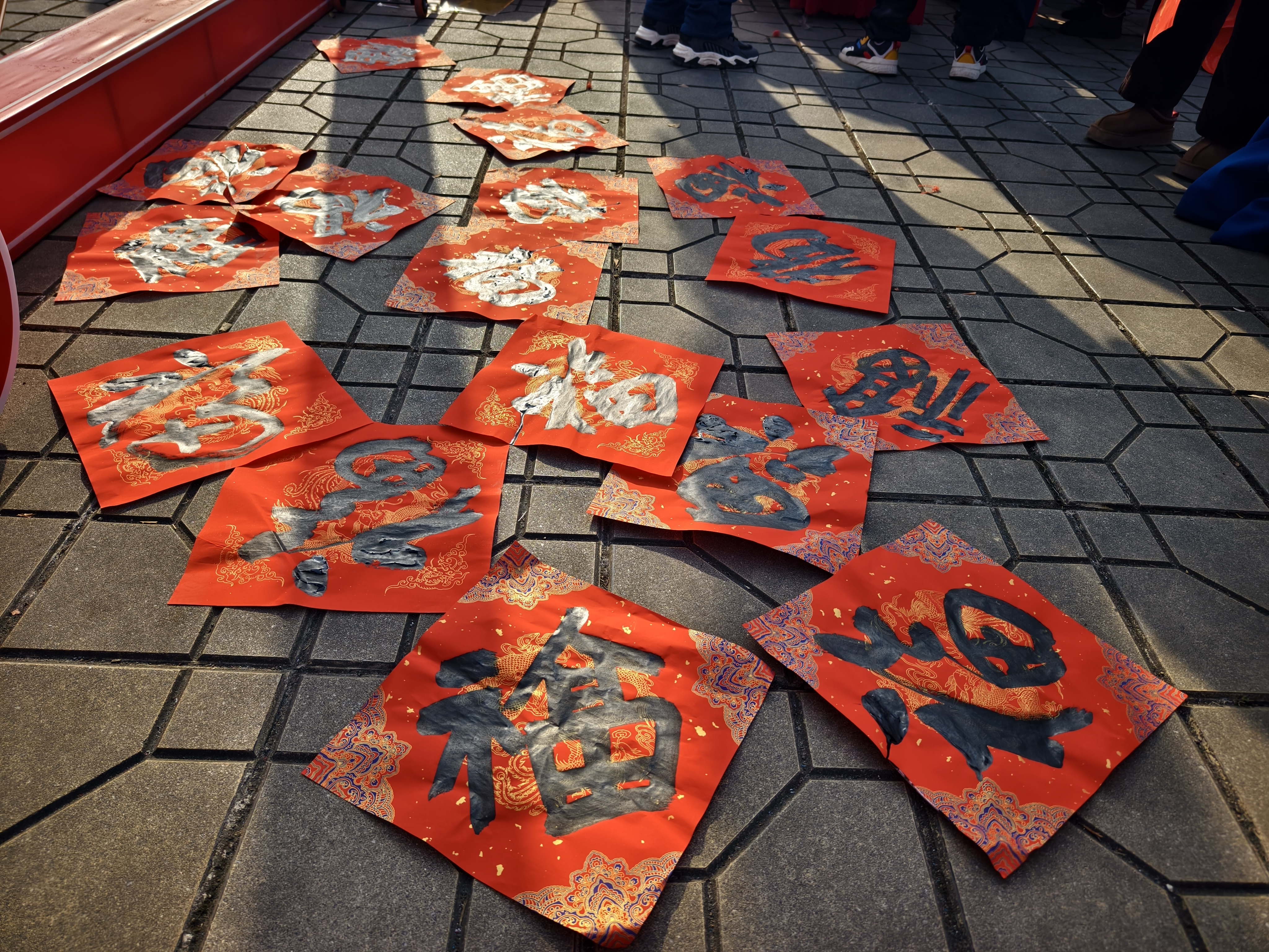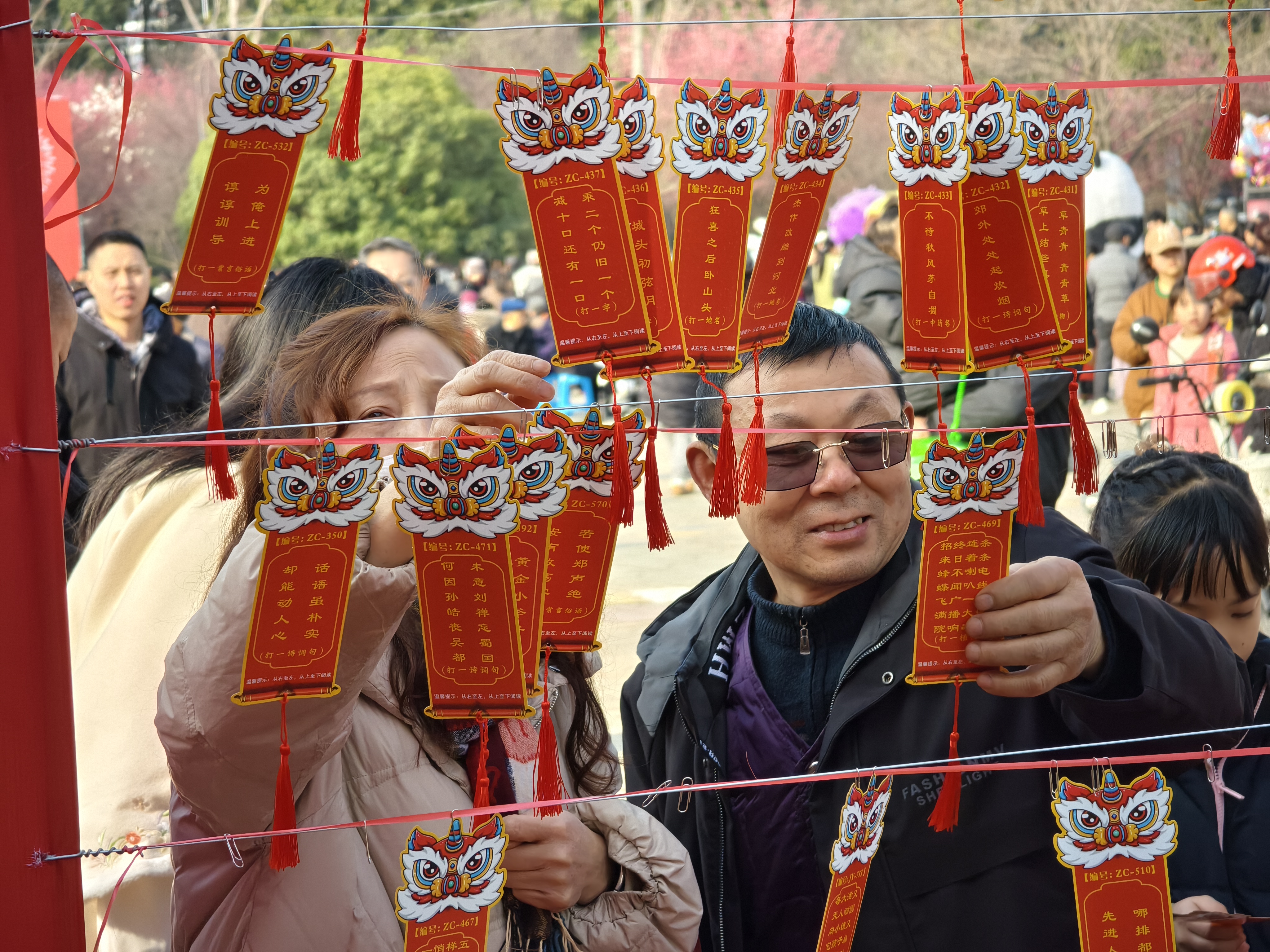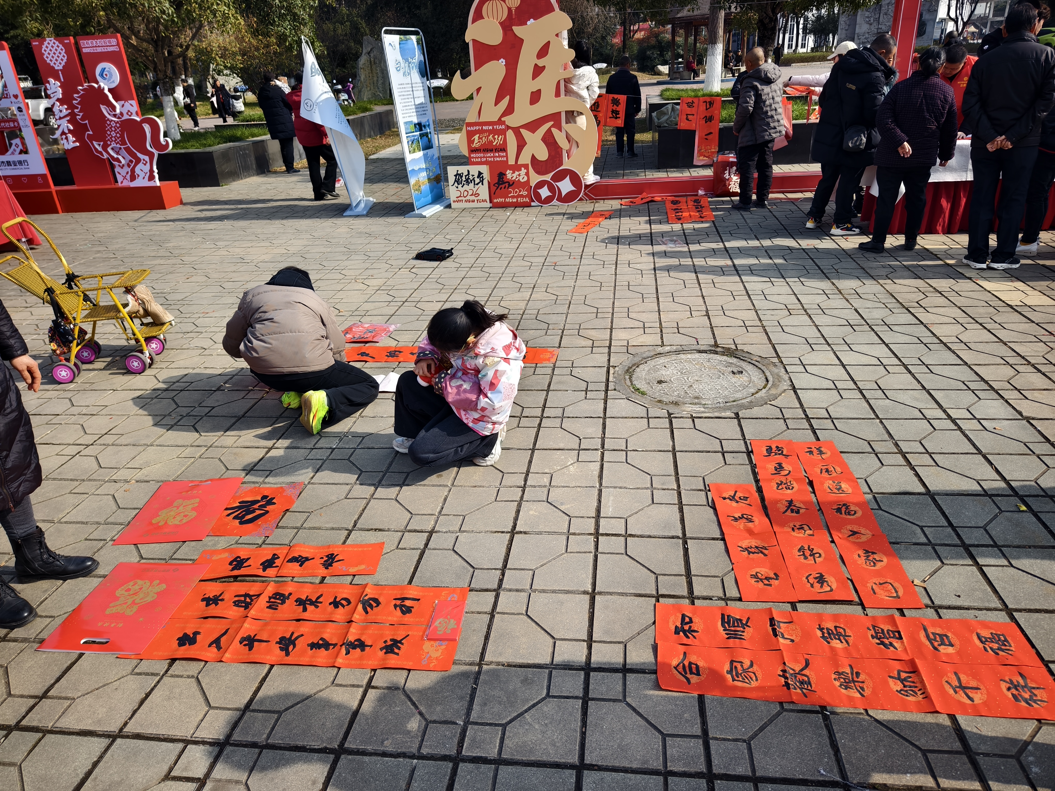 另一边,猜文虎和写对联的区域排起了长队。一副副墨迹未干的大红对联被留意翼翼地平铺在地上“曝晒”。游园会贪图者高明地确立了通关集章圭臬,参与者每完成一个游戏或猜对一个文虎,就能获取一枚钤记,集皆后可兑换福袋小礼品。这种互动贪图极地面普及了环球的参与感和获取感。